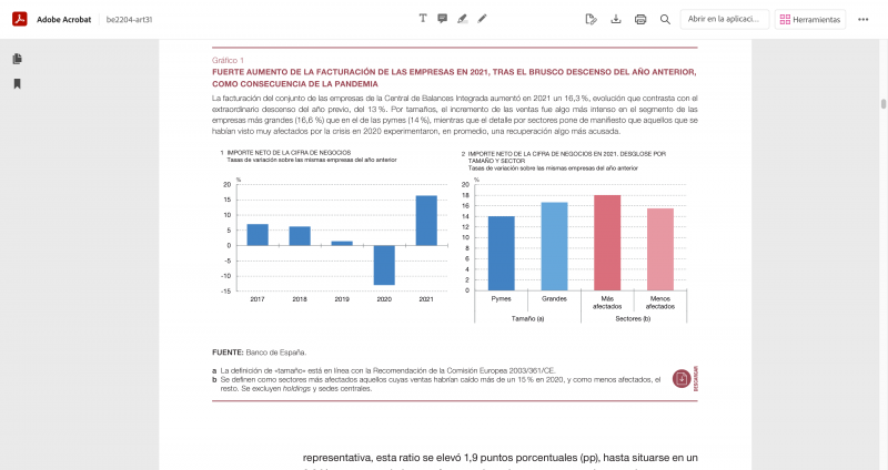 “El desglose por tamaños evidencia que el incremento de las ventas fue algo más intenso en el segmento de las empresas más grandes (16,6 %) que en el de las pymes (14 %)” y, como decíamos, el crecimiento fue mayor entre quienes más habían sufrido en 2020 el zarpazo de la pandemia, cuya recuperación en las ventas fue del 18%. frente al 15,5% en los sectores menos afectados.